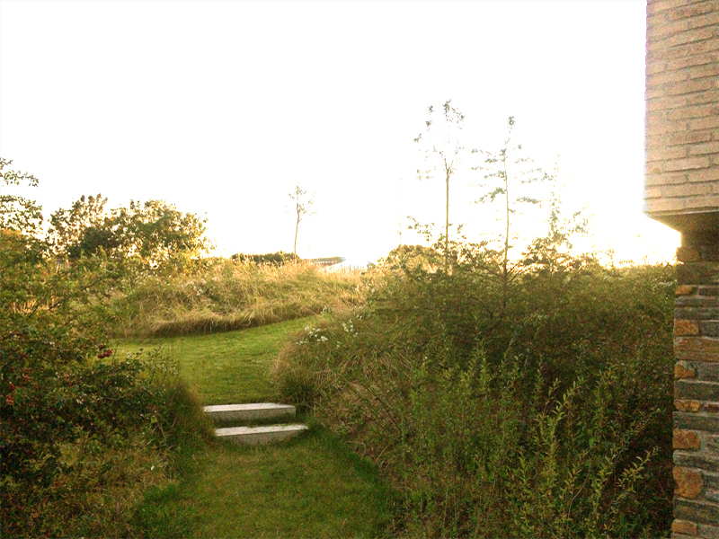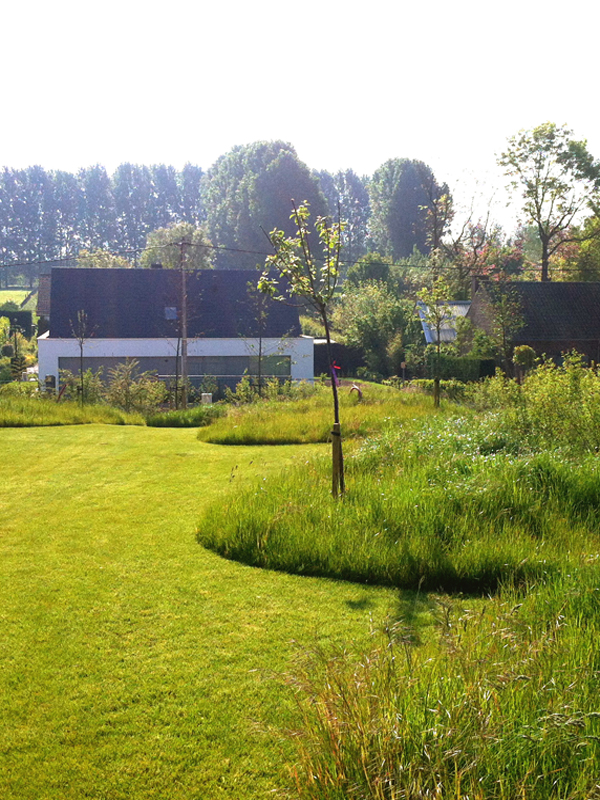 Uitgangspunt was het bekomen van een naadloze overgang tussen de tuin en de achterliggende paardenweides. In relatie met het omliggende landschap werd de tuin o.a. voorzien van een boomgaard en groententuin. Verharding werd tot het strikt noodzakelijke beperkt. De beplanting bestaat grotendeels uit inzaaiingen, wat de natuurlijke aanblik van deze tuin nog versterkt.